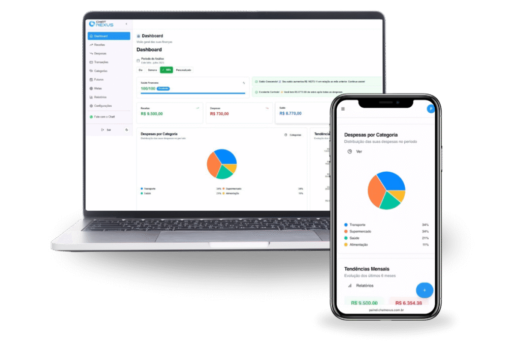 Tire foto do comprovante ou nota fiscal que o Chat Nexus lê e registra pra você!